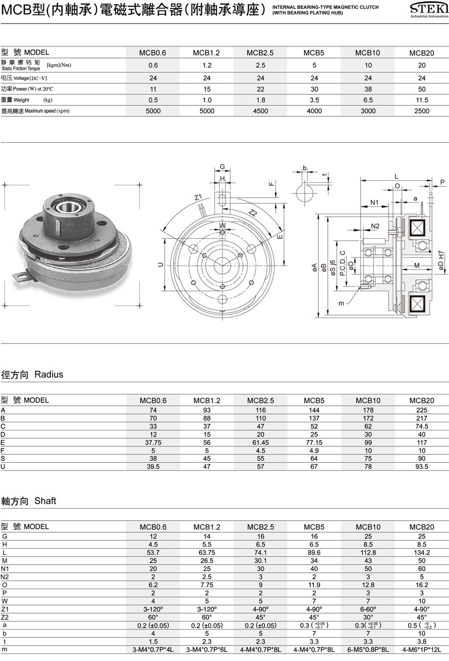 MCB轴承安装型电磁式离合器(附轴承导座),是一种适用于所有普通产业机构的离合器。通过合理的设计, 使扭矩特性、响应性能等所有离合器所需的性能都十分优越, 并且持久耐用。使用轴承安装型定子。该型号安装比较容易, 可以不需要对安装部位的加工, 节省时间和精力。