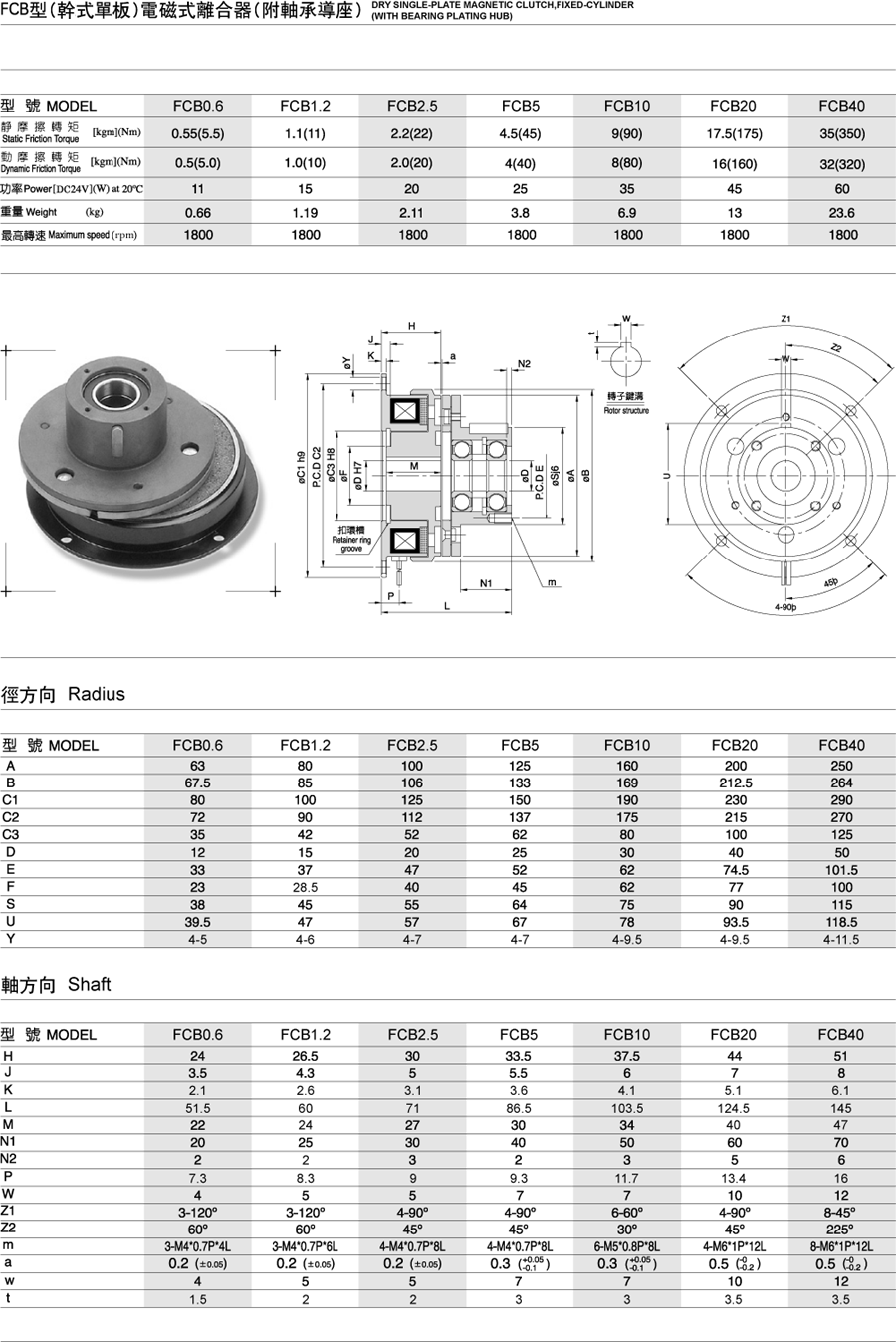FCB型(干式单板)电磁式离合器(附轴承导座)