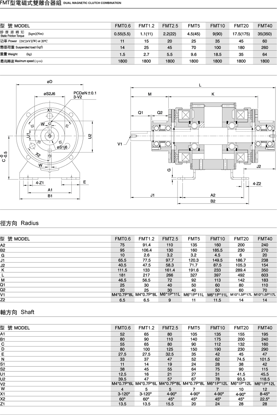 FMT型双离合器组合把轮毂作为输入、用于2级变速及正反转运行,以及把轴作为输入,用于动力分配等用途。